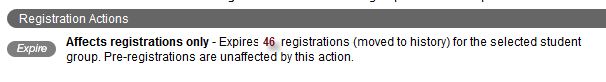 From the Registration Manager screen, you can select a specific end date and a student group. Enter a registration cutoff end date and use the selector to select a group of students you wish to expire registrations.